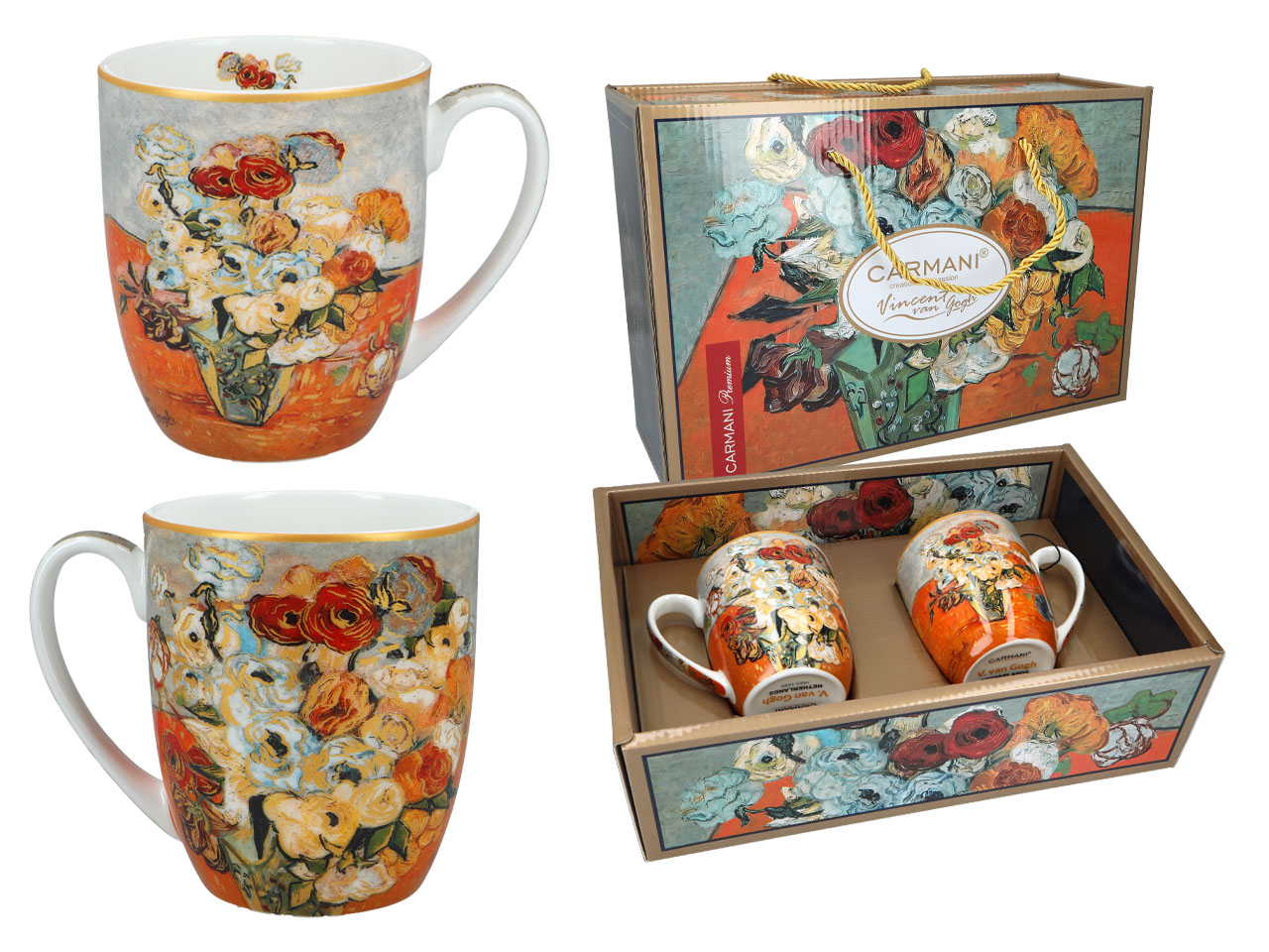 Zestaw dwóch eleganckich kubków z motywem twórczości Vincenta van Gogha. Zapakowane w nietypowe opakowanie, świetnie nadaje się na prezent.