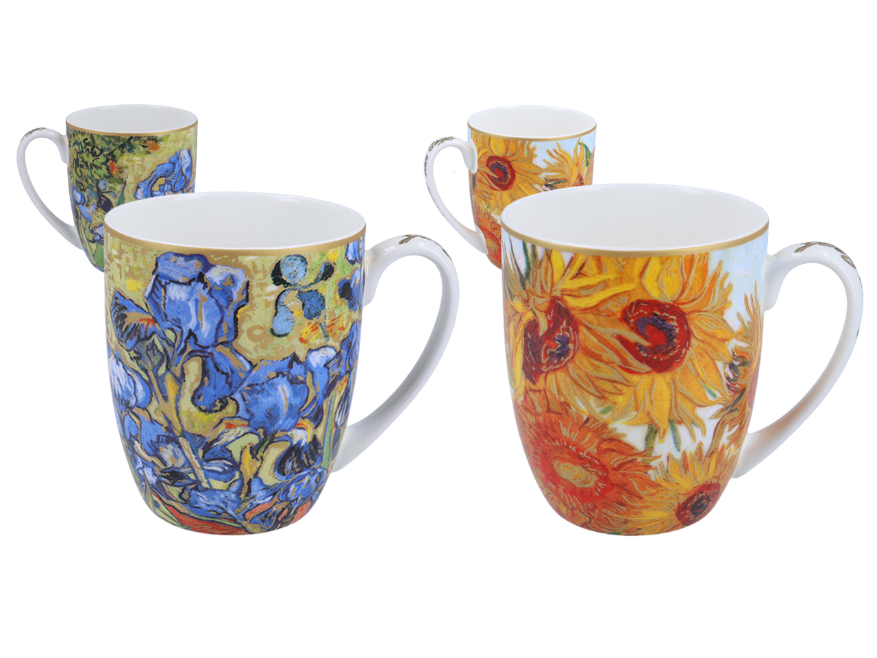 Zestaw dwóch eleganckich kubków z motywem twórczości Vincenta van Gogha. Zapakowane w nietypowe opakowanie, świetnie nadaje się na prezent.